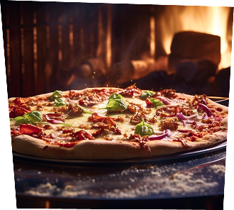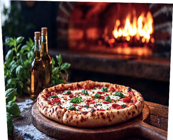 All our pizzas are baked in a traditional wood-fired oven, delivering the perfect balance of crisp crust, smoky flavour, and fresh toppings.